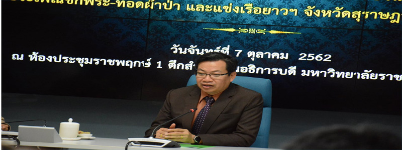 ผศ.ดร.วัฒนา รัตนพรหม รักษาราชการแทนอธิการบดีมหาวิทยาลัยราชภัฎสุราษฎร์ธานี มอบหมายให้ ดร.กฤษณะ ทองแก้ว รองอธิการบดีฝ่ายพันธกิจสัมพันธ์ ร่วมเปิดศูนย์บริการข้อมูลข่าวสาร เพื่อส่งเสริมการท่องเที่ยวในเขตเทศบาลนครสุราษฎร์ธานี ภายใต้ความร่วมมือของ จังหวัดสุราษฎร์ธานี เทศบาลนครสุราษฎร์ธานี การท่องเที่ยวแห่งประเทศไทยสำนักงานสุราษฎร์ธานี และสำนักงานท่องเที่ยวและกีฬาจังหวัดสุราษฎร์ธานี ท่ามกลางตัวแทนจากหน่วยงานต่างๆ